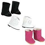 18 Inch Doll Boots. Fits American Girl Dolls. 3 Pack of Doll Boots.3 pairs of different style boots for 18 inch dolls. Tall Zip Up Black Boots. Suede Hot Pink Ewe Boots with White Faux Fur Lining. White Cowgirl Boots with Diamond Cutouts. One pair of each detailed boot to fit most 18 inch dolls!